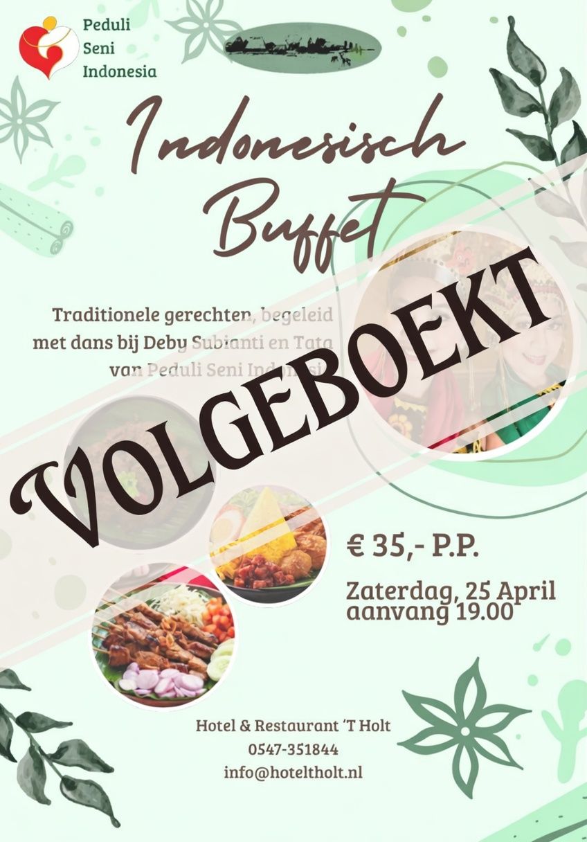 Voor volgend weekend zijn wij volledig volgeboekt, maar niet getreurd! In juli staat er een Indonesische Pasar gepland. Tijdens deze Pasar worden echte Indonesische producten aangeboden, kunt u genieten van een Indonesische massage en zal er s'avonds weer een Indonesisch buffet zijn!